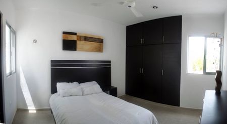 Consta de dos recámaras con aire acondicionado, dos baños, sala comedor y cocina. La renta incluye internet-wifi abierto, agua y recolección de basura y limpieza de áreas públicas.