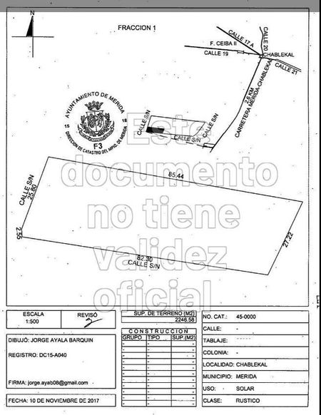 Está en esquina y tiene frentes de 82 metros al sur y de 28 metros al oeste.; por lo que es muy aprovechable para lotificar.