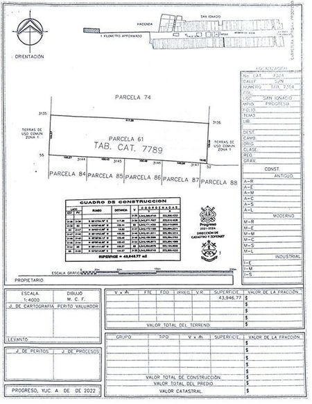Forma parte de un terreno más grande con superficie de 43,946m2 del que se vende esta fracción de 29,297 m2 con medidas aproximadas de 278 metros de frente al sur (camino) y 106 metros de fondo.
